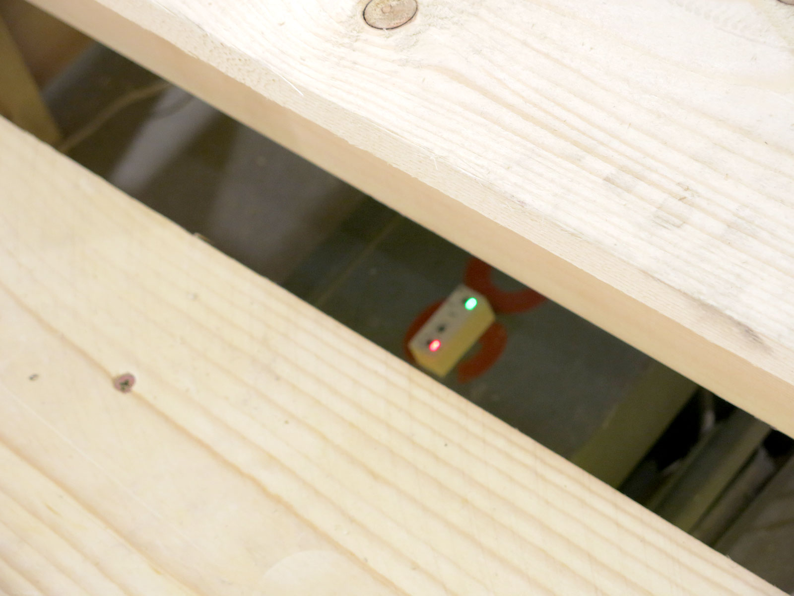 [group show] This installation included 56 A4 treated ready-made, a walking path platform and motion sensor that triggered electronic lights & beeps [hidden under the 4 steps]